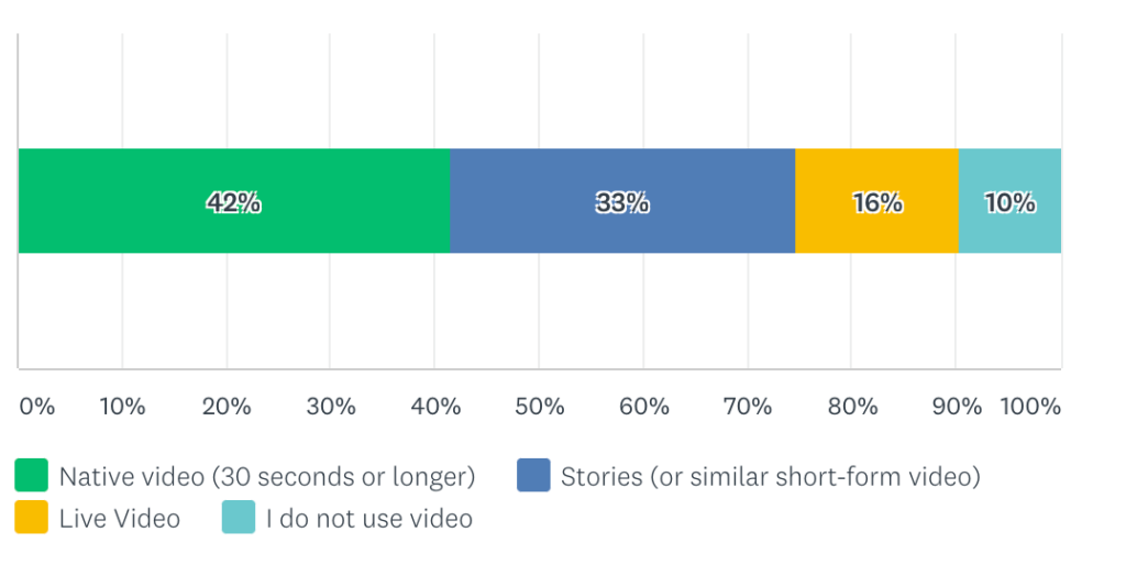 Un sostanziale 72% ha dichiarato di utilizzare contenuti video sulla piattaforma.